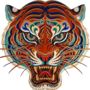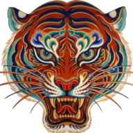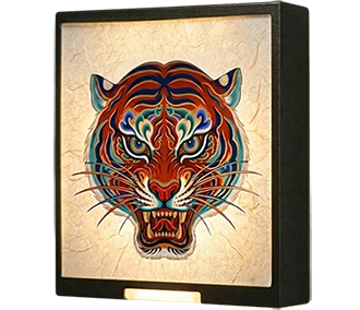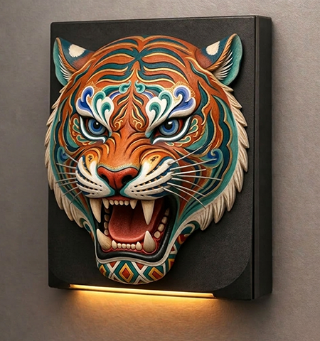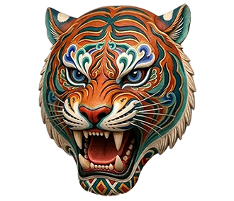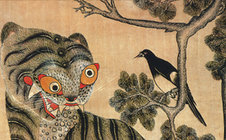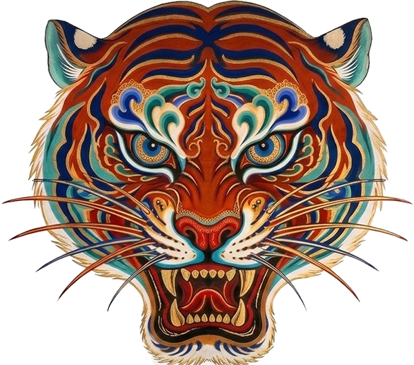 단청호랑이 단호는 오방색을 바탕으로 한국 전통의 미감과 호랑이의 수호 상징을